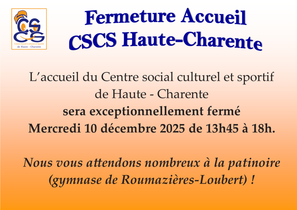 de 9h15 à 11h45 au CSCS (Roumazières-Loubert)
