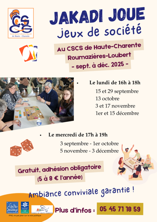 Jakadi joue (jeux de société) : lundi 1er et 15 décembre (16h) / mercredi 3 décembre 2025