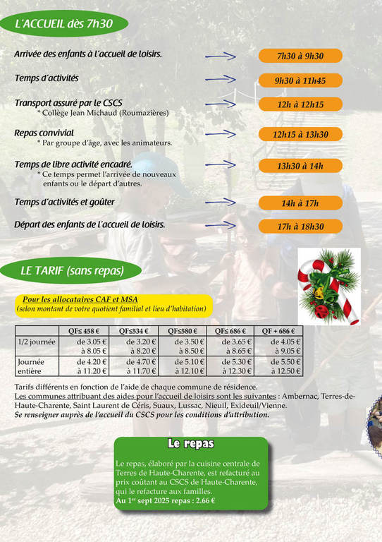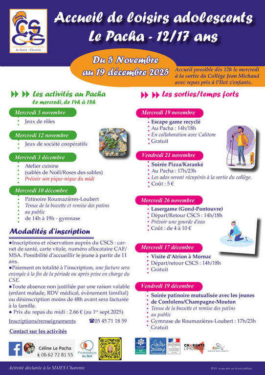 Possibilité de récupérer les jeunes à 12h à la sortie du collège Jean Michaud (Roumazières). Déjeuner pris à l'accueil de loisirs L'Ilot z'enfants de La Péruse.