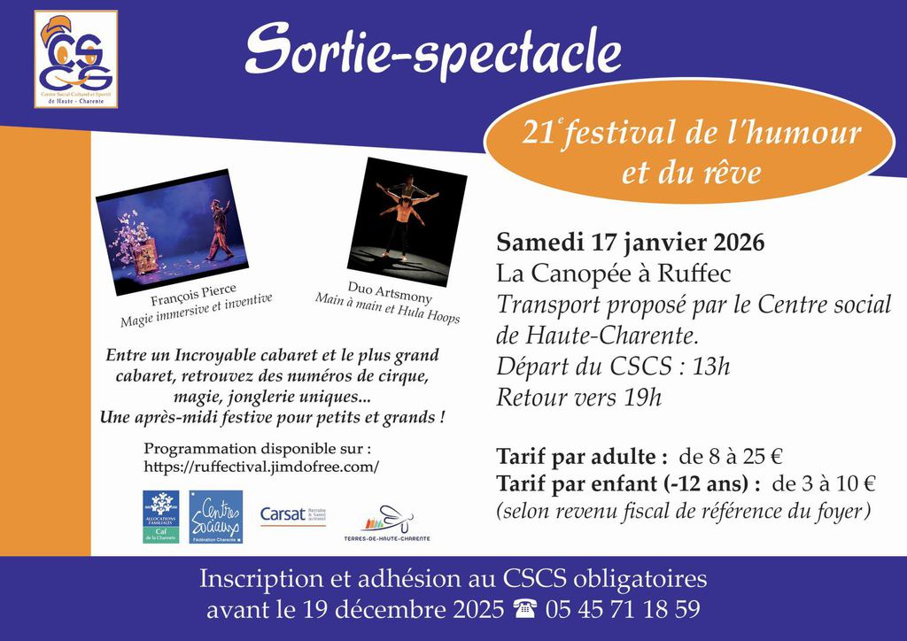 Sortie Ruffectival : samedi 17 janvier 2026 (COMPLET)