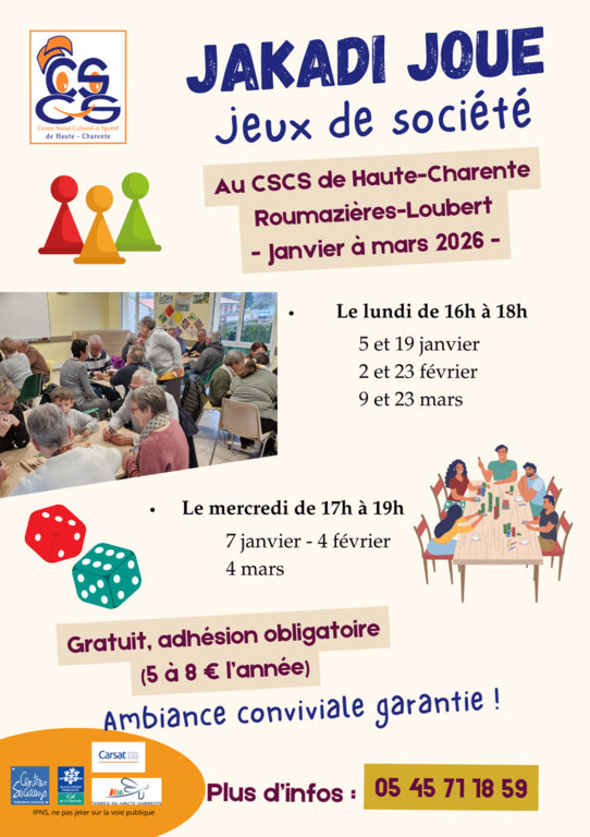 Jakadi joue (jeux de société) : 9 et 23 mars 2026 - 16h
