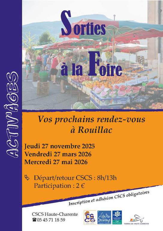 Sortie à la foire de Rouillac : vendredi 27 mars 2026 - 8h/13h