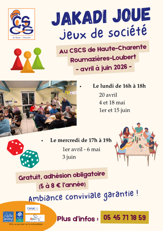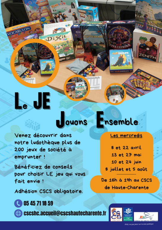 Ludothèque (prêt de jeux de société) : 8 et 22 avril 2026 - 16h/19h