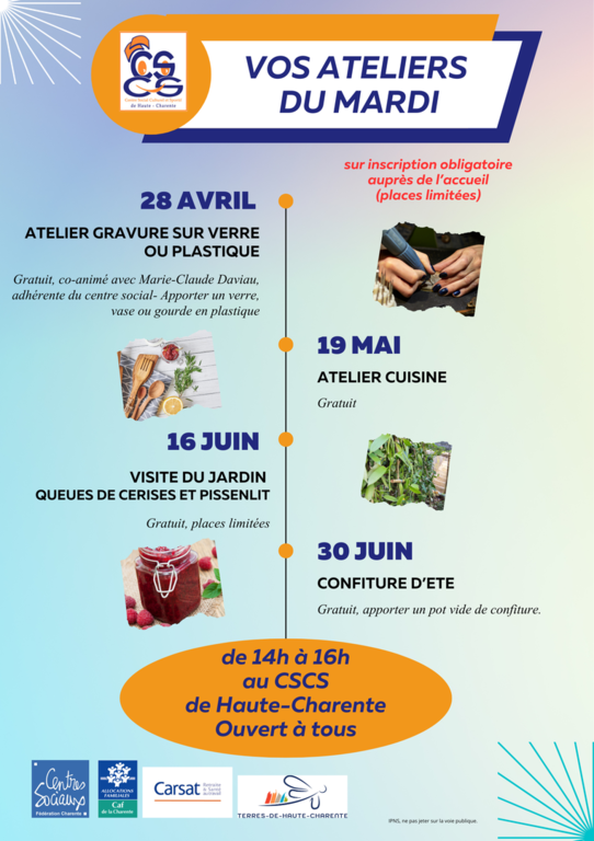 - 14h/18h : atelier cuisine
