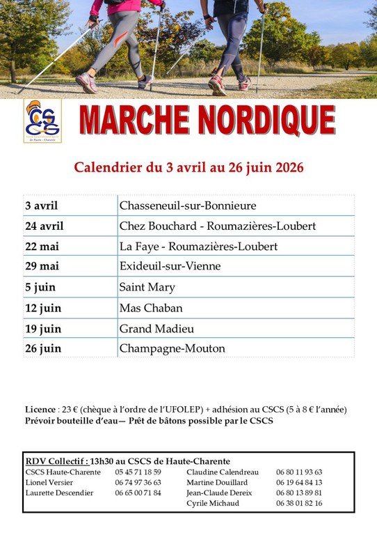 sur réservation et paiement obligatoire à la réservation auprès du CSCS 05 45 71 18 59 avant le 24 avril 2026.